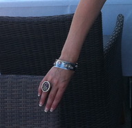 Jorma Laineen suunnittelema sormus kivellä. Aiheen koko 3,2 x 2,6 cm. Sormuksen koko säädettävissä, minimikoko 17 mm.