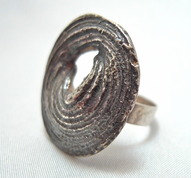 Helky Juvosen suunnittelema isokokoinen sormus. Aiheen koko 3,1 x 2,9 cm. Halkaisija 17 mm.