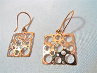 Liisa Vitalin suunnittelemat kultaiset Pitsi -sarjan korvakorut. Aiheen koko 1,6 x 1,6 cm.