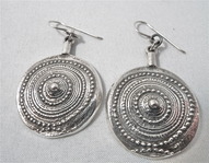 Jorma Laineen suunnittelemat Chic -sarjan hopeakorvakorut. Aiheen halkaisija 2,6 cm