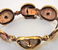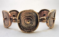 Jorma Laineen suunnittelema Chic -sarjan pronssinen rannekoru. Aiheen halkaisija n. 2,3 cm. Ranneosan halkaisija n.5,5 cm.