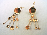 Jorma Laineen ja Kultateollisuus Viljasen valmistamat huikean kauniit kultaiset korvakorut. Koko 4,9 x 1,2 cm.