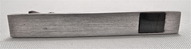 Hopeinen kravaattineula spektroliittikoristeella. Koko 0,7 x 5,1 cm.